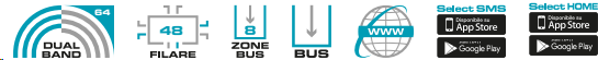 Gestione di 120 zone totali tra ingressi zone cablate universali, zone bus e zone radio.